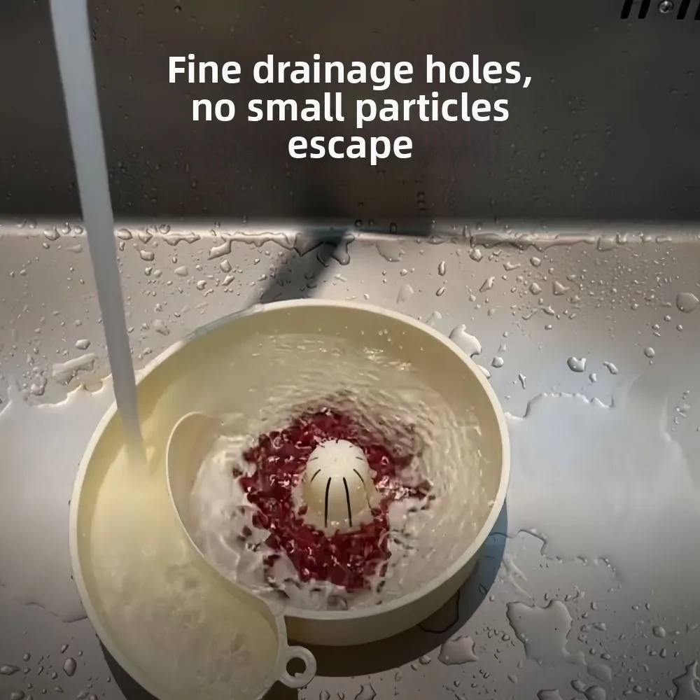 🔄 Automatic Rotating Basket – Water flows into a vortex along its curve.Simply use water and the inner basket spins to wash and drain water effortlessly.