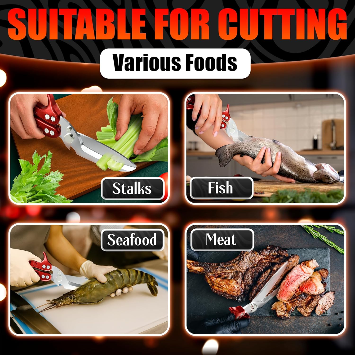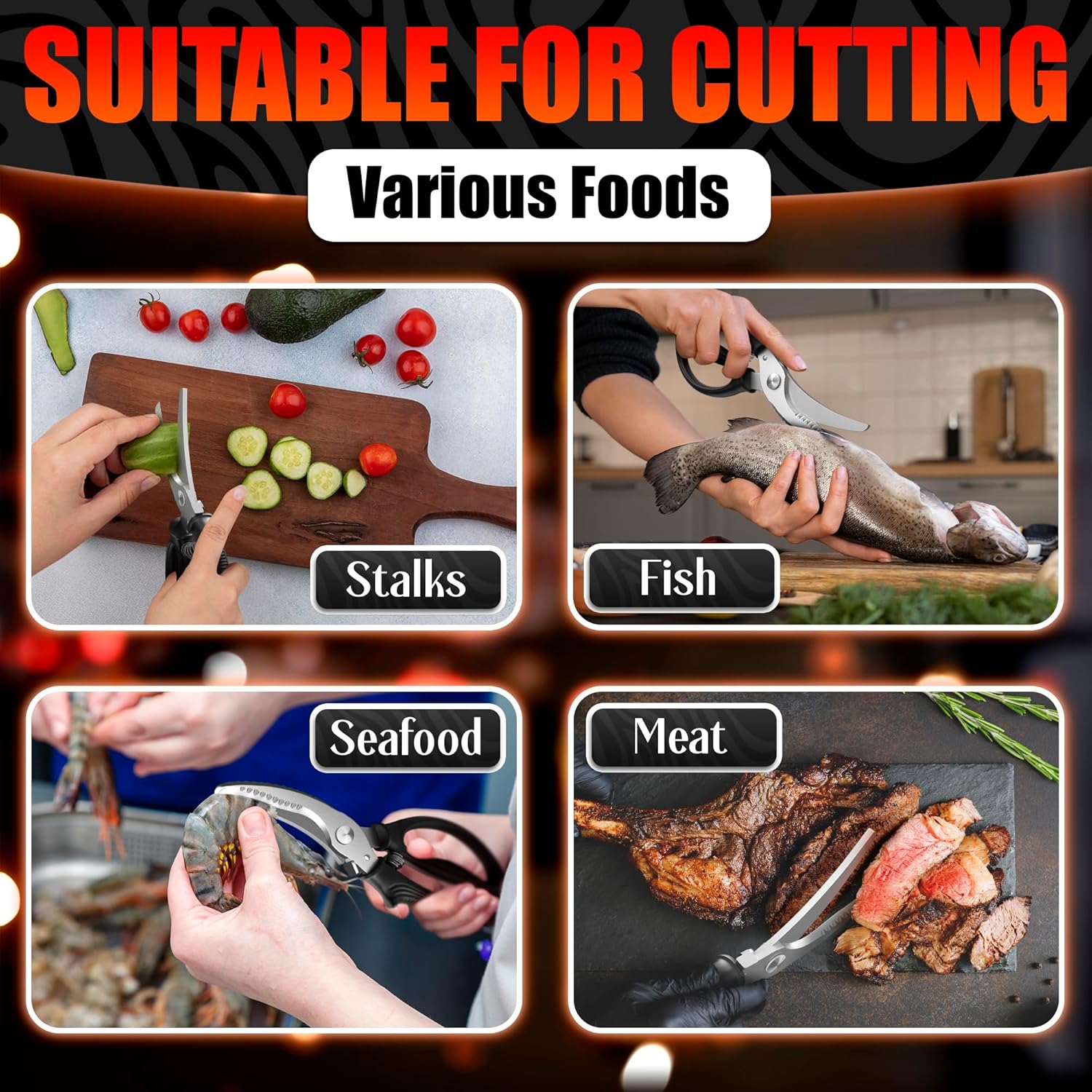 - Food Cutting Scissors All Purpose: Quickly chop fruits, veggies, meats, and salads. These food scissors with cutting board simplifies prep, replacing multiple kitchen gadgets for easier cooking tasks