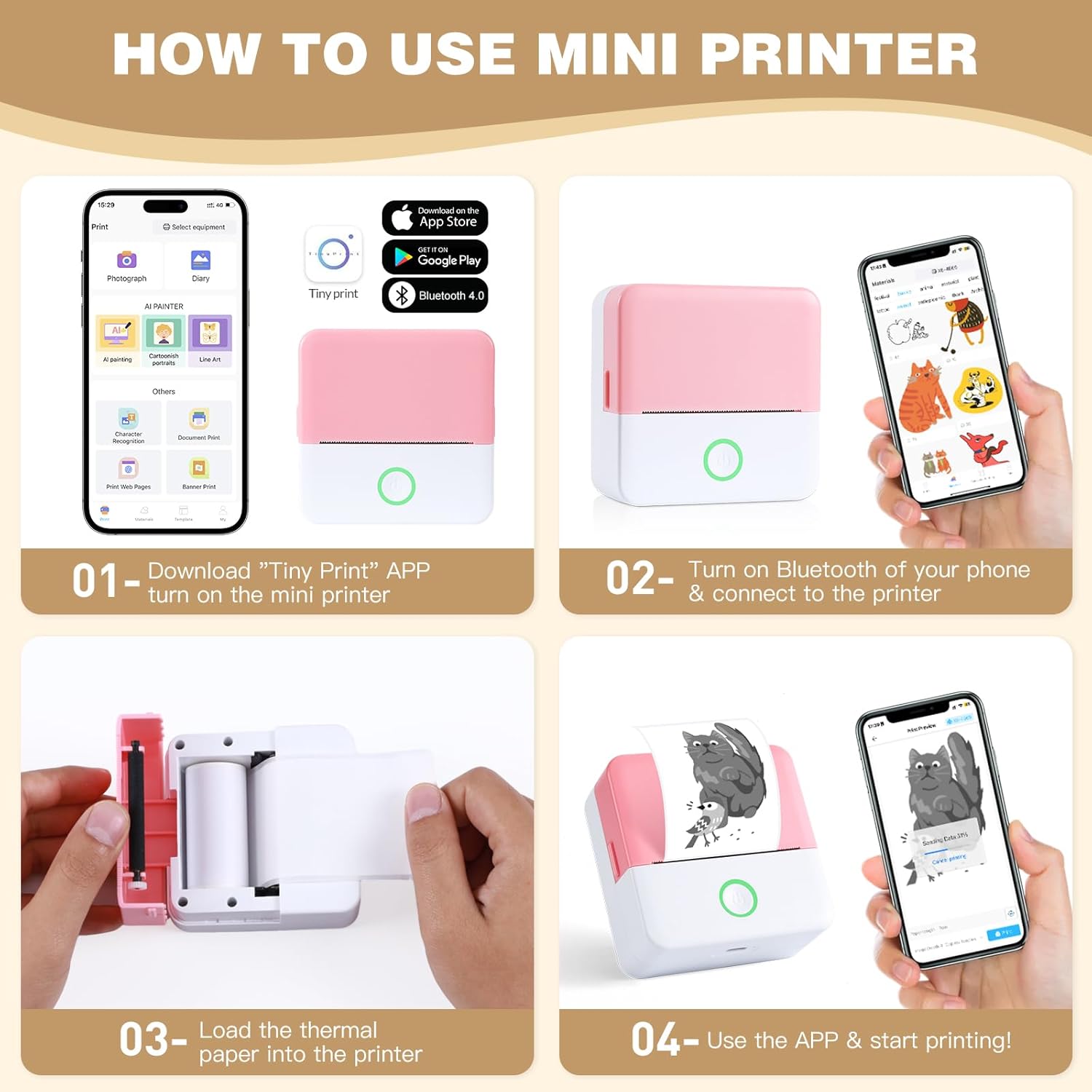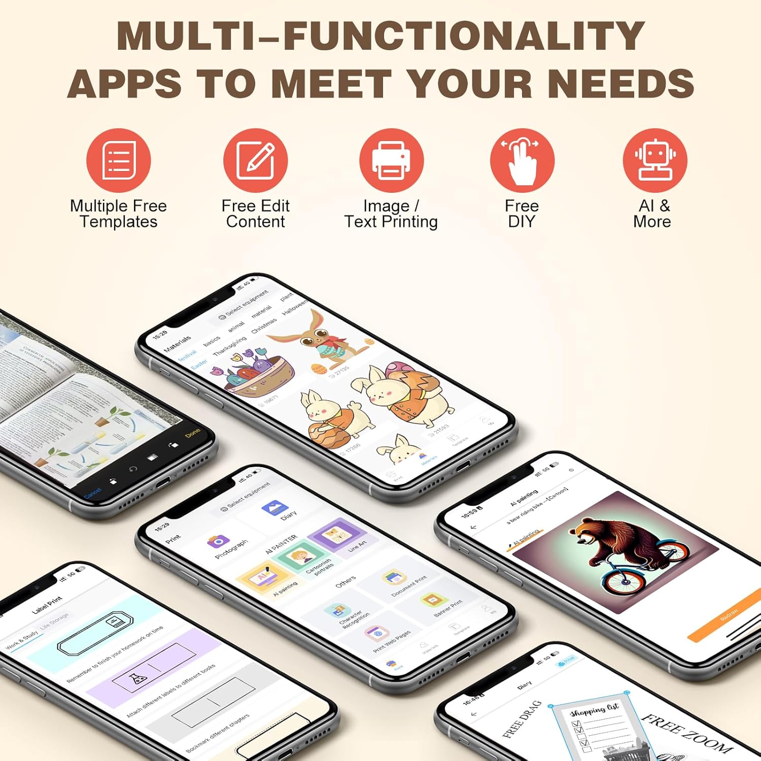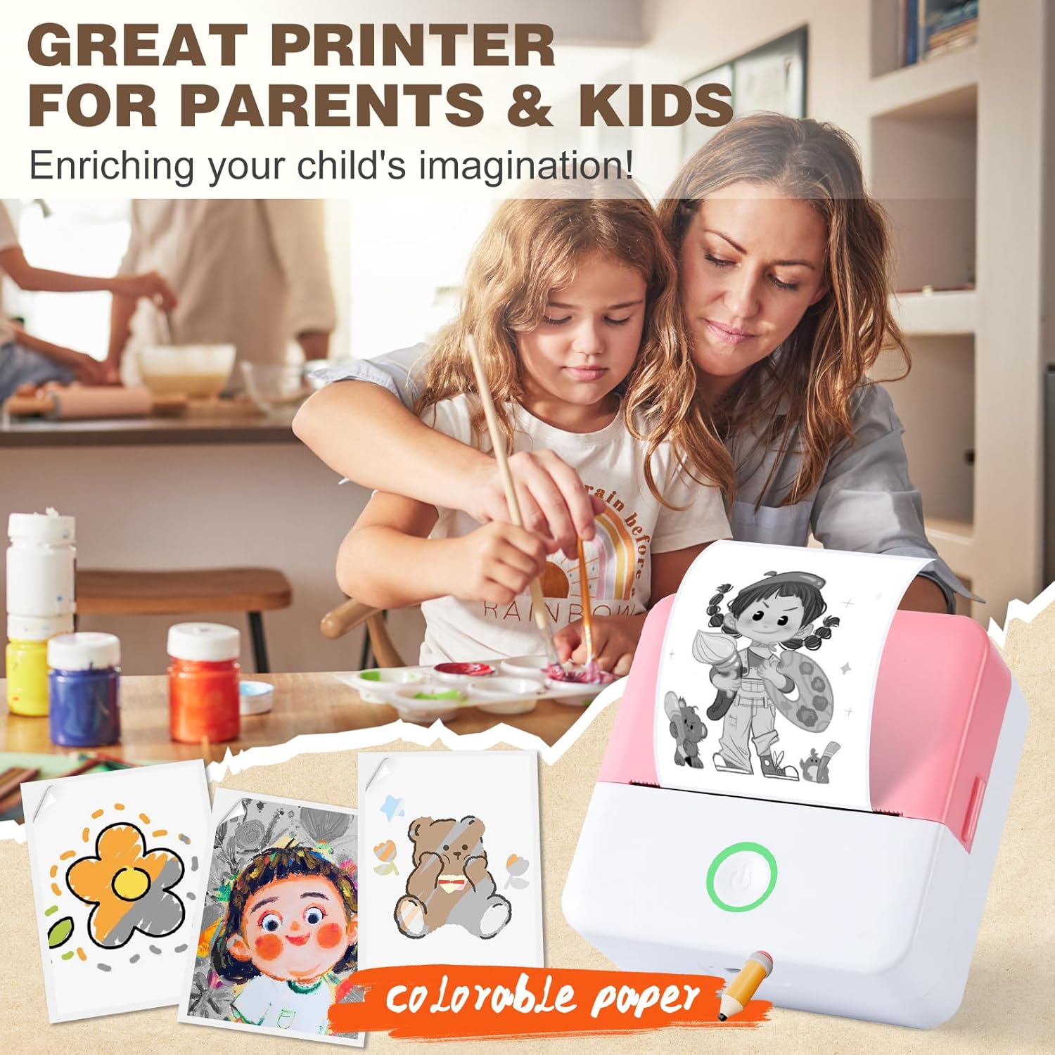- Long Battery Life & 200DPI Resolution: The sticker maker has a built-in high-density rechargeable 1200mAh lithium-ion battery, with 200dpi high-resolution printing imaging to protect children's eyes, note: if the printing is not clear after repeated use, you can use alcohol to wipe the laser bar of the printer (the laser bar is located in the paper loading compartment)