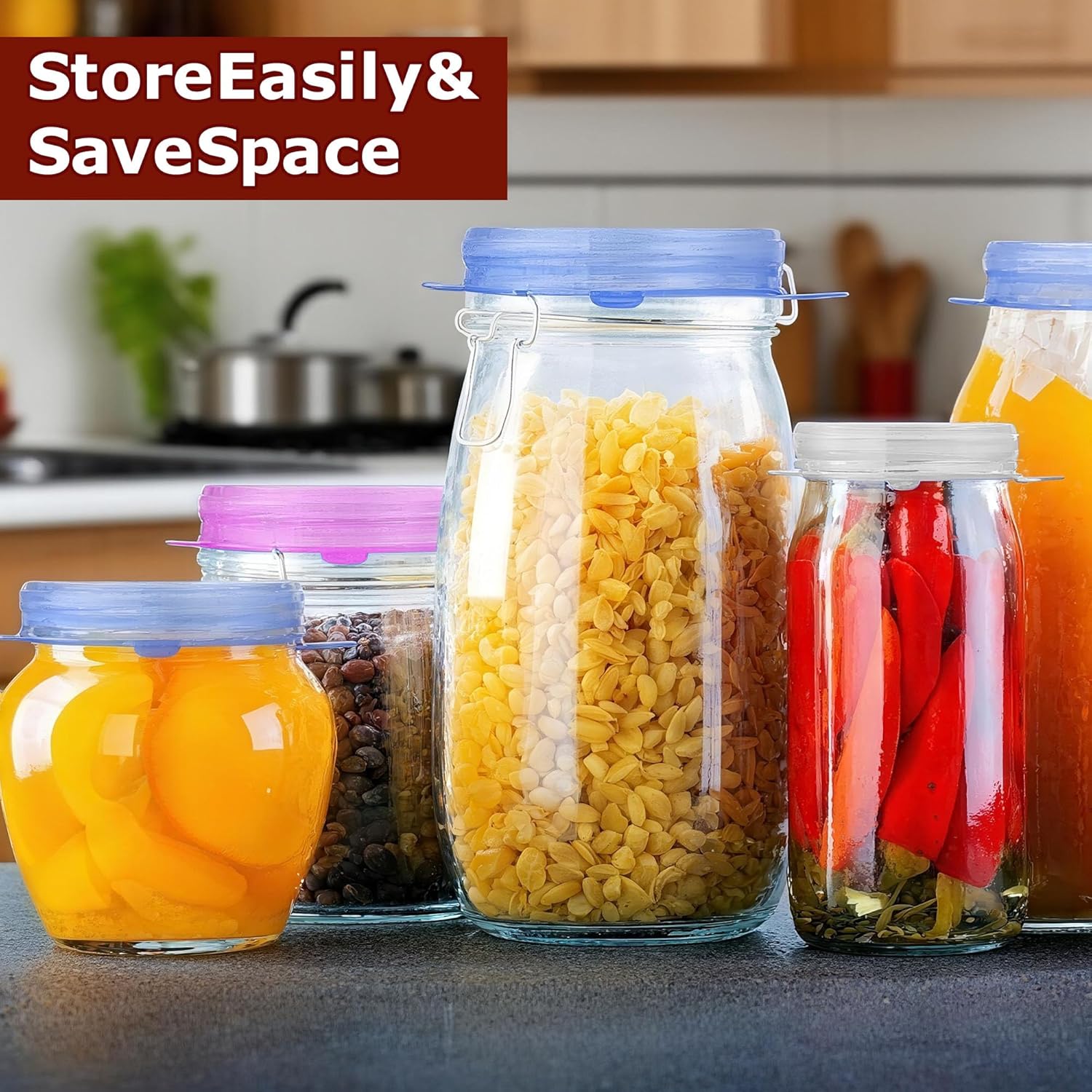 - 【Clear the Clutter】Neatly stack containers with our silicone jar lids to keep your refrigerator and pantry organized, maximize space, and keep things organized.